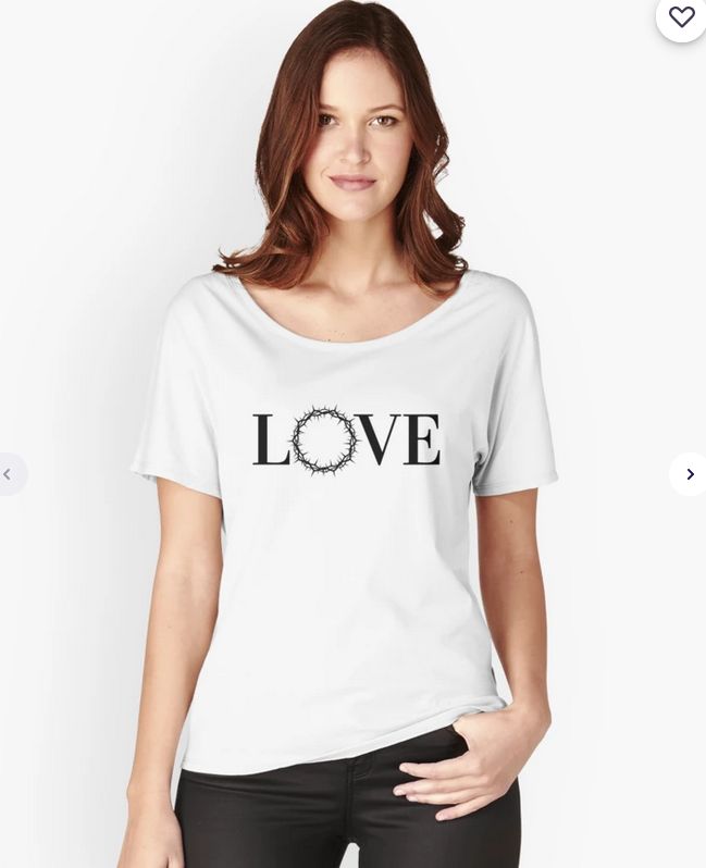 “Love Relaxed Fit T-Shirt, with the letter “O” being a crown of thorn pointing to the love of Jesus.